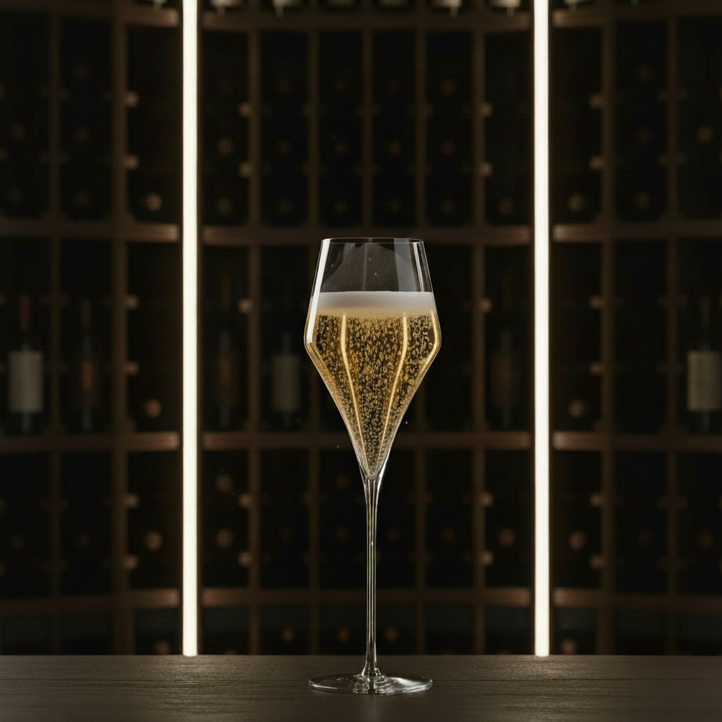 Flûte à Champagne n° 2 de la collection PALACE, soufflée à la bouche.
